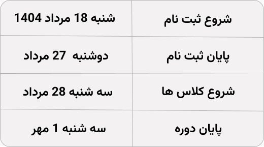 5 هفته آموزش آنلاین (یکشنبه و سه شنبه ساعت 17 تا 20)
